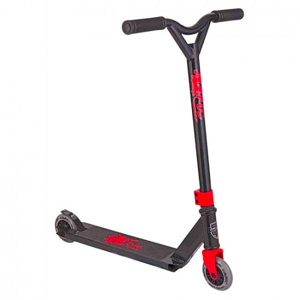Godt begynder trickløbehjul til mindre børn. Anbefalet alder 4-6 år. Ny Y-Bar design - Hi Tensile Riser Handlebar, 460mm wide x 500mm høj bar til mindre riders. Specificationer • Letvægts løbehjul i 6061 aluminium • Maks brugervægt 80 kg. • Højde fra gulv til håndtag 78 cm. • Frisk ny grafik • Grit fjeder bremse • Deck størrelse: 48 x 10 cm. • Forgaffel støbt i et stykke • Bløde grips • Grit ABEC 7 lejer • Hærdede 100MM 85A nylon hjul. • Vægt 3.3 kg.