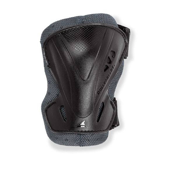 The protection is provided by a robust and ergonomic plastic shell mounted on a firm but comfortable lining. The fit to the elbow is done with elastic bands that are adjusted and locked with velcro