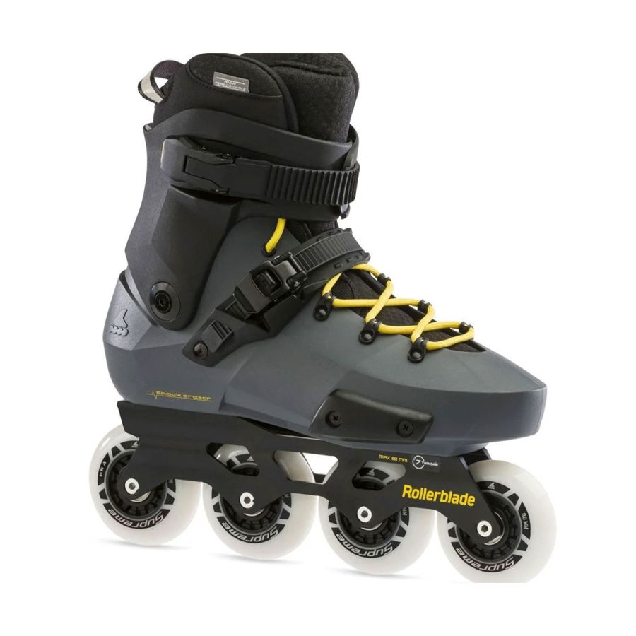 Supreme wheels paired with ILQ-7 Plus bearings provide excellent grip and speed. The secure closure system includes 45° micro-buckles and lacing; brake is included. Twister