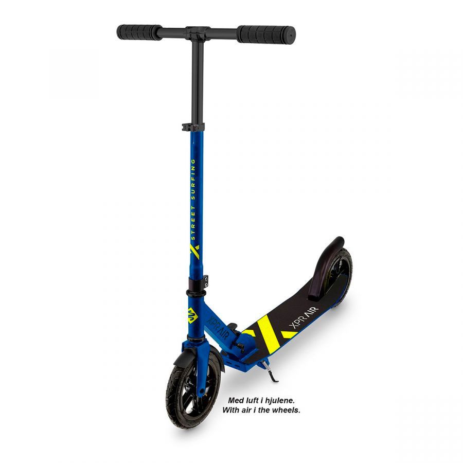 The Scooter from Street Surfing URBAN XPR AIR False Alarm is perfect for riding to school or work as well as for riding downtown. With the folding mechanism, you can quickly fold the scooter and carry it around. The inflatable wheels dampen vibrations, allowing for a fast and smooth ride. The wheels are also large enough (200mm in diameter) to carry you over bumps in the road. The wide handlebars and lowered deck (only 7.5cm above ground) not only make the Scooter Street Surfing URBAN XPR AIR False Alarm extremely stable, but also allow for easy push-off. You may also appreciate the kickstand and soft handlebar grips.