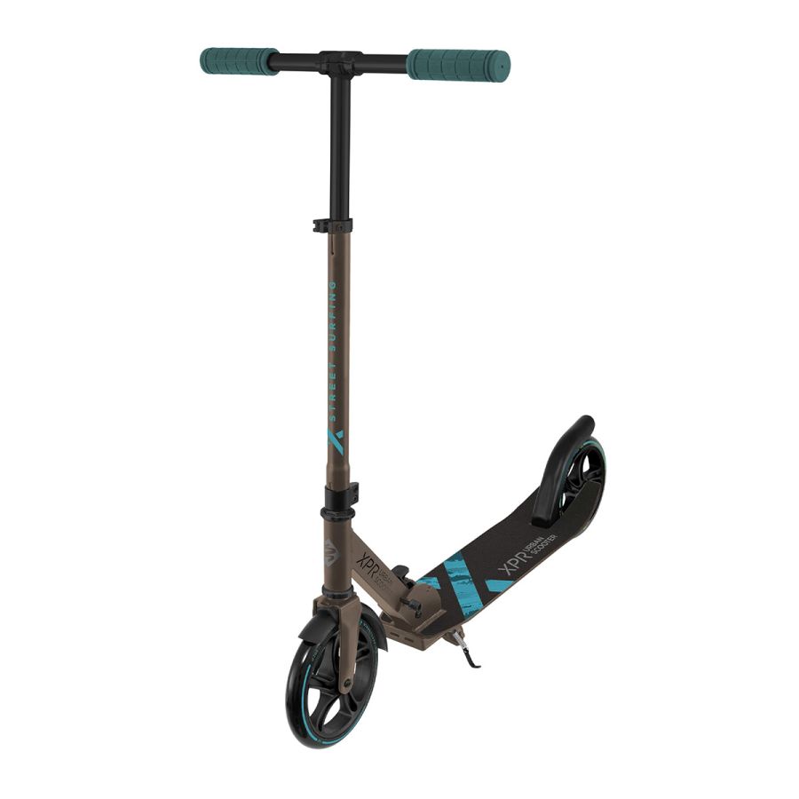 The Scooter from Street Surfing Urban XPR Burst is perfect for riding to school or work, or riding in town. The simple folding mechanism makes the scooter easy to carry. This is a fast and smooth scooter. Wheels are large, 205mm wheels will deal with moderate terrain. Technical description: Scooter with folding structure, fenders and kickstand Quality workmanship Attractive design Recommended minimum user height: 125cm Deck: reinforced aluminum with anti-slip grip tape Deck light weight: only 7.5cm – for easy push off Deck dimensions: 32 x 14cm 2-point sleeve Wheels: 205mm in diameter, 80A, PU – for safe ride in moderate terrain Bearings: ABEC 7 Handlebars: aluminum, adjustable height, rubber grips Adjustable handlebar height (3 positions): 76cm – 93cm – 99cm Brake: durable, steel Structure: folding – easy to carry and store Weight: 4.5kg Recommended age: 8+ Weight limit: 100kg